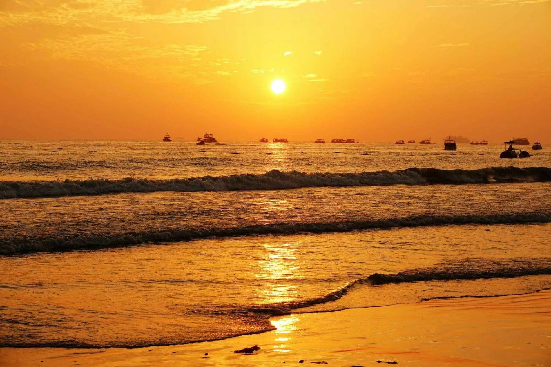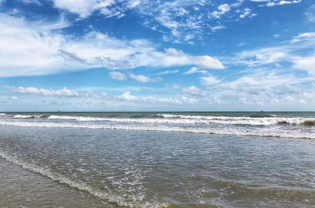 北海银滩是北海市的著名的旅游景点,位于广西壮族自治区北海市银海区,占地面积约38平方公里。西起冠头岭,东至大冠沙,由西区、东区和海域沙滩区组成,东西绵延约24公里,海滩宽度在30--3000米之间,陆地面积12平方公里,总面积约38平方公里。北海银滩面积超过大连、烟台、青岛、厦门和北戴河海滨浴场沙滩的总和,而平均坡度仅为0.05。沙滩均由高品位的石英砂堆积而成,在阳光的照射下,洁白、细腻的沙滩会泛出银光,故称银滩,北海银滩以其“滩长平、沙细白、水温净、浪柔软、无鲨鱼”等特点,而被称为“天下第一滩”。