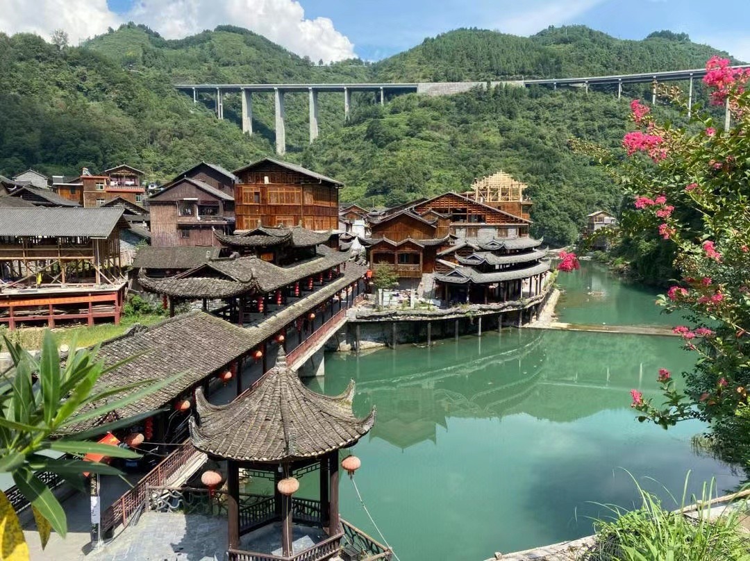 墨戎苗寨即龙鼻嘴村,全村由13个苗寨组成,有17个村民小组,共1018户,5568人。位于吉首、古丈、保靖三县(市)交界处,距州府吉首20公里,距古丈县城22公里,距张家界130公里,距风凰古城80公里。该村正处于张家界至凤凰这一“黄金通道”上,焦柳铁路、龙吉高速公路、省道S229公路穿寨而过,交通便利。