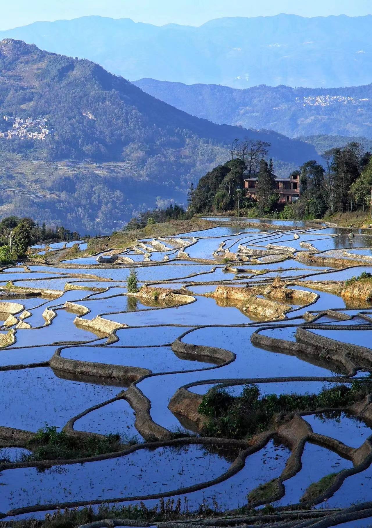 元阳梯田,位于云南省红河州元阳县的哀牢山南部,是哈尼族人世世代代留下的杰作。元阳梯田是红河哈尼梯田的核心区。红河哈尼梯田是以哈尼族为主的各族人民利用特殊地理气候同垦共创的梯田农耕文明奇观,规模宏大,气势磅礴。元阳哈尼族开垦的梯田随山势地形变化,坡缓地大则开垦大田,坡陡地小则开垦小田,甚至沟边坎下石隙也开田,因而梯田大者有数亩,小者仅有簸箕大,往往一坡就有成千上万亩。
