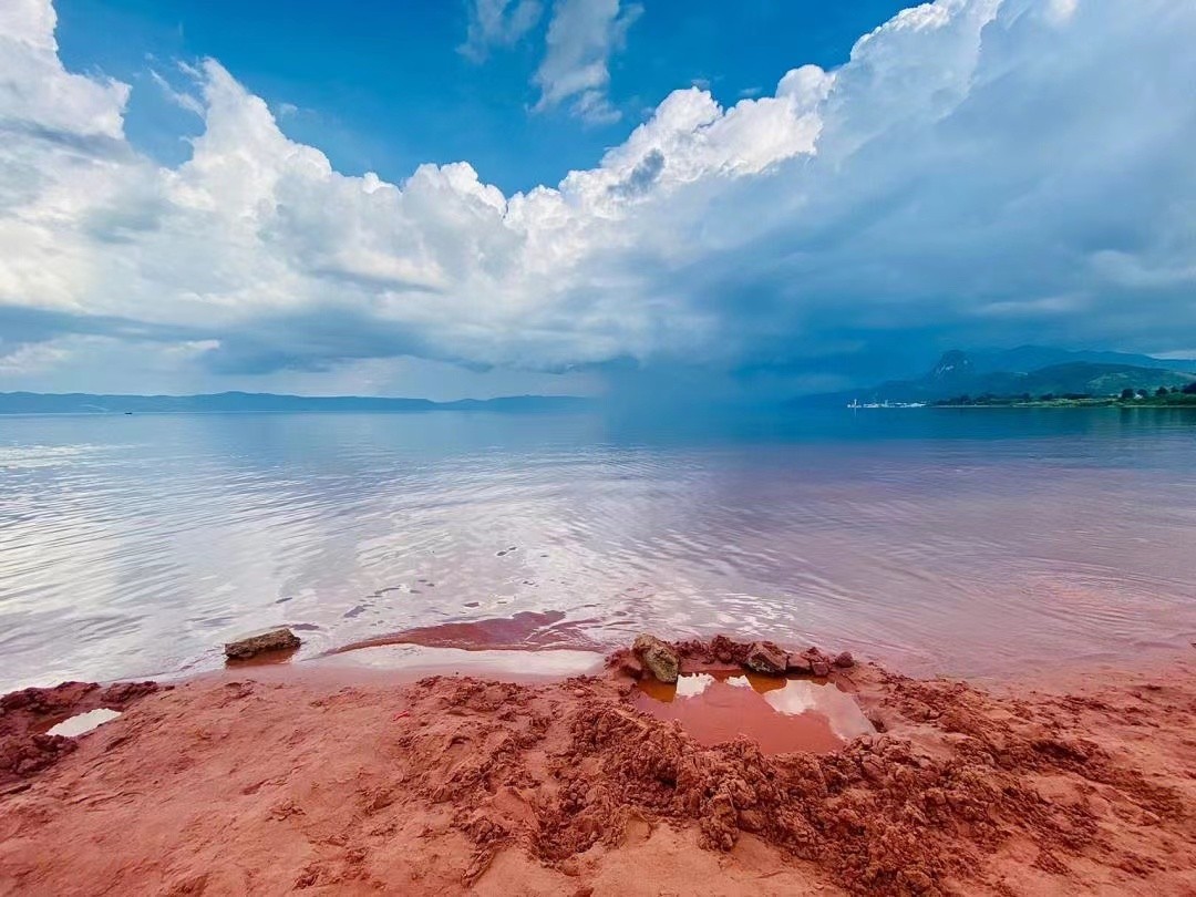 “东川红土地”位于昆明市以北偏东方向,属昆明市东川区。从昆明到达景点中心行程约250公里车程,主要景点在海拔1800至2600之间。因云南东川高温多雨下发育而成的红色土壤,这种土壤含铁、铝成分较多,有机质少,酸性强,土质黏重。这里方圆近百里的区域是云南红土高原上最集中、最典型、最具特色的红土地。衬以蓝天、白云和那变幻莫测的光线,构成了红土地壮观的景色。在景区生长着一颗沙松树,为松科冷杉属,据说已有上千年树龄,曾枯死三年又吐新芽,被当地村民称其为“老龙树”,保佑着这一方乡民。墨客前往老龙树景点时突然惊雷交加,陈雨潇潇;瞬间又云舒日出,据说是数十年一遇的吉象。