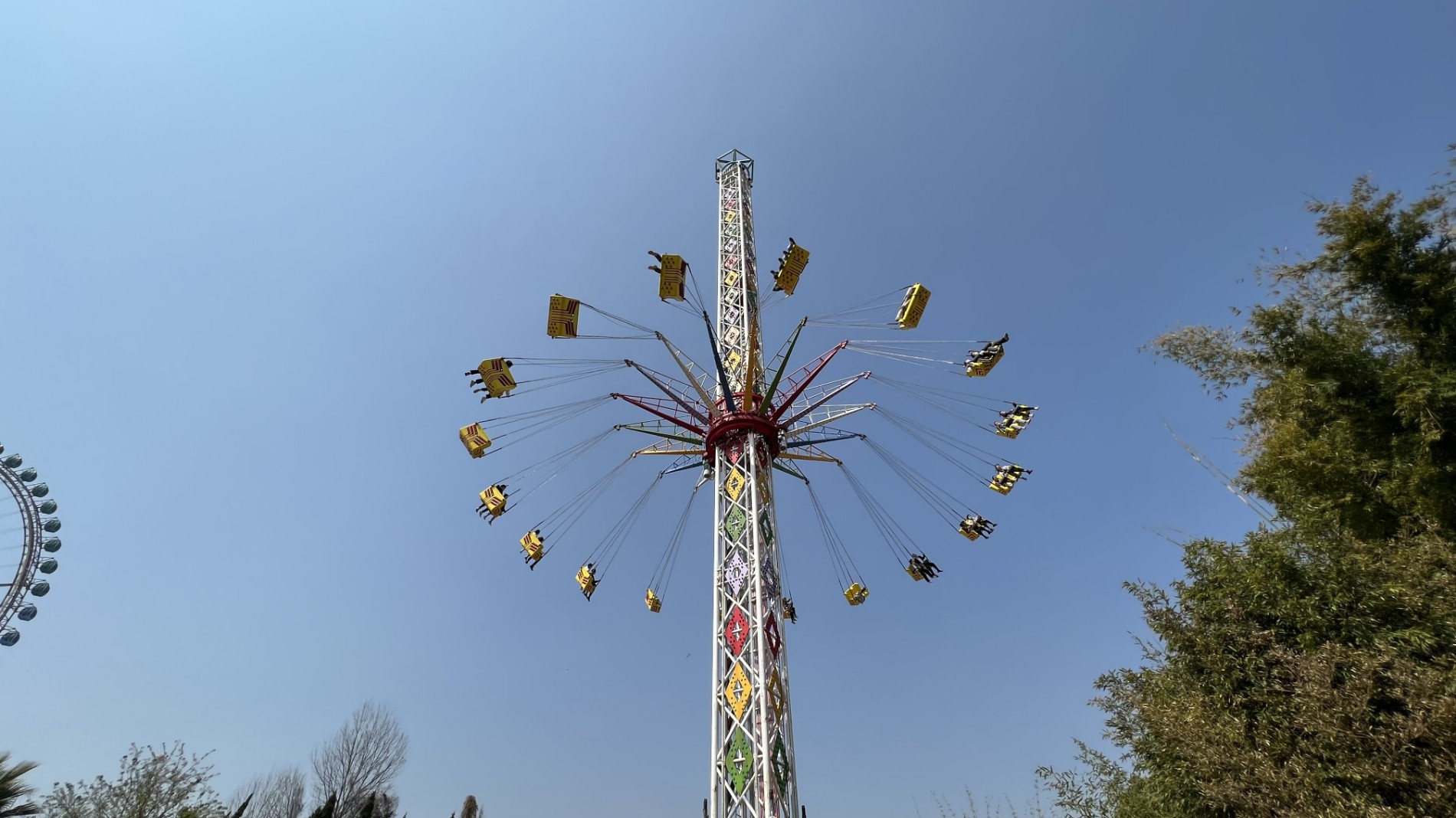 在屋面的四个转角,分别沿45度方向安置了角梁形成了屋脊的主要构件,4根角梁直伸到屋顶,和悬空的雷公柱用鱼尾榫扣在一起,角梁下部和金檩、檐檩固定。该建筑上面两层因角梁下部过重,而采用一根柱子撑住角梁,下部落在下层屋面角梁上,使整个建筑看起来更加均衡得体。顶层攒尖顶屋面举架6举,出檐1米,未设檐口桁条,屋面椽子断面均为园形,未设飞椽。二、三层楼面做法为采用两根长9米多、高0.2米、间距有3米多的工字钢置于南北向的横梁上,上置楼楞、楼板、下置平大观楼为单体木结构楼阁式建筑。坐北向南,立于占地402平方米的两级石台基之上。楼阁本体平面为长方形,面阔17米,进深10米,占地170平方米。楼高三层18米,三层檐黄色琉璃瓦四角攒尖顶。该建筑整幢建筑的大木断面尺寸较小,除底层柱断面直径为0.4米外,梁枋断面直径最大也就是0.2米,承重较大的部位采用多根梁枋重迭受力。室内的两把楼梯设计巧妙,充分利用了内外两柱之间的空间而又避开了来自上部梁的干扰。[6]