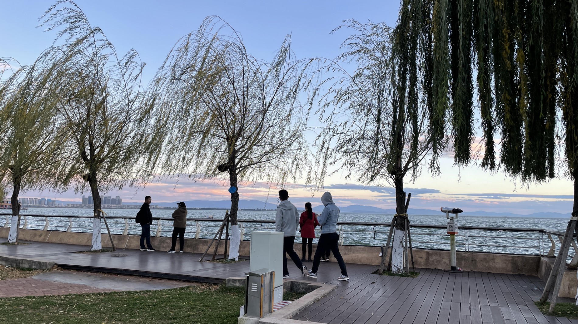 只有到海埂,您才能真切的看到睡美人山的容姿。面容清淅,曲线婀娜,秀发流转,与夕阳绘成一幅瑰丽的画卷。四季景色各有不同,美丽和谐。