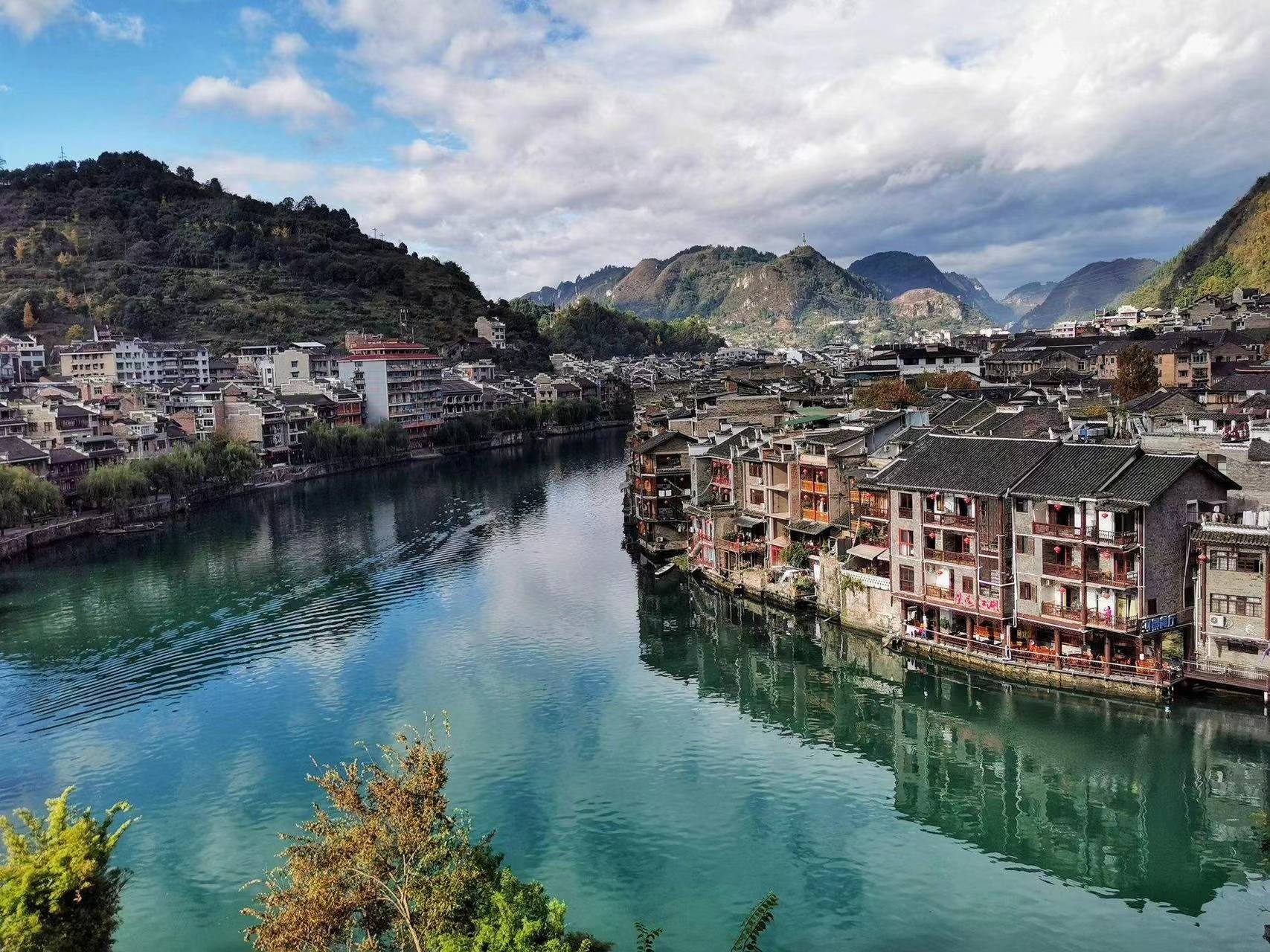 镇远古镇,位于贵州省黔东南苗族侗族自治州镇远县,河水蜿蜒,以“S”形穿城而过,北岸为旧府城,南岸为旧卫城。两城池皆为明代所建,现尚存部分城墙和城门。城内外古建筑、传统民居、历史码头数量颇多。据记载,古代的镇远,地处历史上“五溪蛮”和“百越人.
