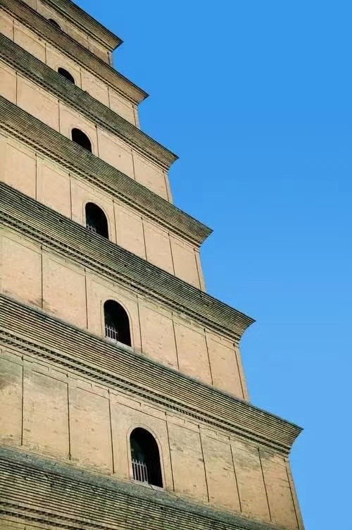 大雁塔位于唐长安城晋昌坊(今陕西省西安市南)的大慈恩寺内,又名“慈恩寺塔”。唐永徽三年(652年),玄奘为保存由天竺经丝绸之路带回长安的经卷佛像主持修建了大雁塔,最初五层,后加盖至九层,再后层数和高度又有数次变更,最后固定为所看到的七层塔身,通高64.517米,底层边长25.5米。大雁塔作为现存早、规模大的唐代四方楼阁式砖塔,是佛塔这种古印度佛寺的建筑形式随佛教传入中原地区,并融入华夏文化的典型物证,是凝聚了中国古代劳动人民智慧结晶的标志性建筑。