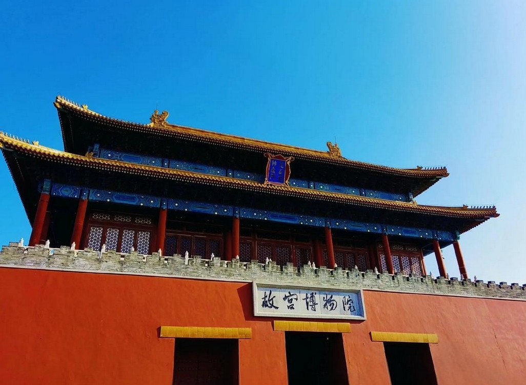 故宫,建成于明朝永乐皇帝 18 年(1420 年)。她旧称紫禁城。总占地面积 72.4 万平方米,总建筑面积 16 万平方米,城周环以 10 米高的城墙,周长 3 248 米。从明朝永乐皇帝起到清朝溥仪被逐出宫的近 500 年中,先后有明朝的 14 个皇帝和清朝的 10 个皇帝,在这里生活和处理国事。