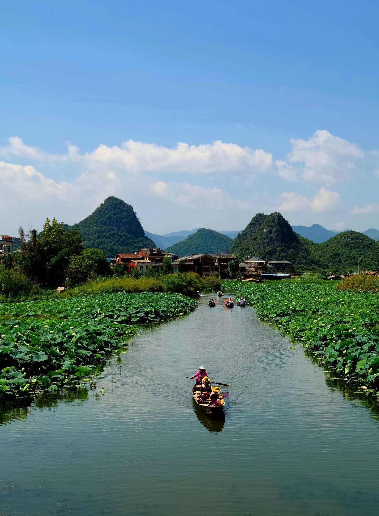 登制高点占机位拍摄山水风光(普者黑经典的照片)日出朝霞,田园风光、渔船,河流、村庄等拍摄题材。彝族生态文化村仙人洞村---普者黑仙人洞村是一个古老的村庄,背靠青山,前临绿水,仙人湖环绕在村边,万顷碧波,绿如翡翠,倒映着峻秀的孤峰和古朴的民居。【情人桥】,【三生三世十里桃花拍摄地】--箐丘,【仙人洞村】,观景栈道,中餐后乘车至千年壮寨【马碧村】村寨依山傍水,村民沿河而居、枕河而伴,村子周围被山林包围,山清水秀,景色宜人。一座50米长的铁索吊桥横跨川流而过的马碧河,是该村外出及上山劳作的唯一通道。其文化底蕴深厚、原生态壮文化元素较多,经过世世代代的发展,壮族寨子依然保持着淳朴、勤劳、热情等优良传统。2018年12月国家将马碧村、革里村等列入第五批中国传统村落名录,载入了史册。最后乘车至广南入住酒店