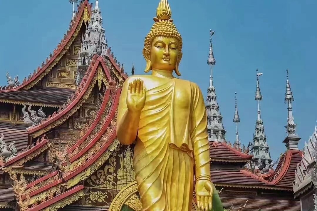 中餐后带您游览最具南传** 特色--小乘**文化的国家 AAAA 级景区【勐泐文化旅游区】(单程电瓶车 40 元/人已含)(寺院会有一些烧香活动 ,请理性消费) ,是中国最大的南传**寺院 ,**占地面积 400 亩 ,寺内落成南传**最高的大佛—— 吉祥大佛(高 60 米)、最高的大塔(高 80 米)。其规划轮廓与原自然地貌巧合 ,呈坐佛形 ,为国内外所独有。 从山门至万佛塔 ,佛祖释迦牟尼的生平巧妙的融入到景观和建筑中 ,使得每处细节都有说法、故事 ,从万佛塔广 场俯视景洪市区 ,旖旎的热带风光尽收眼底。观***孔雀放飞 ,成千上万只孔雀从大佛所在的山上飞下来 ,场 面很壮观。之后前往版纳网红打卡地 AAAA 级景区——告庄西双景 ,告庄西双景旨在重现古时景洪盛景, 展现一个繁华昌盛的"景洪城中之城"。